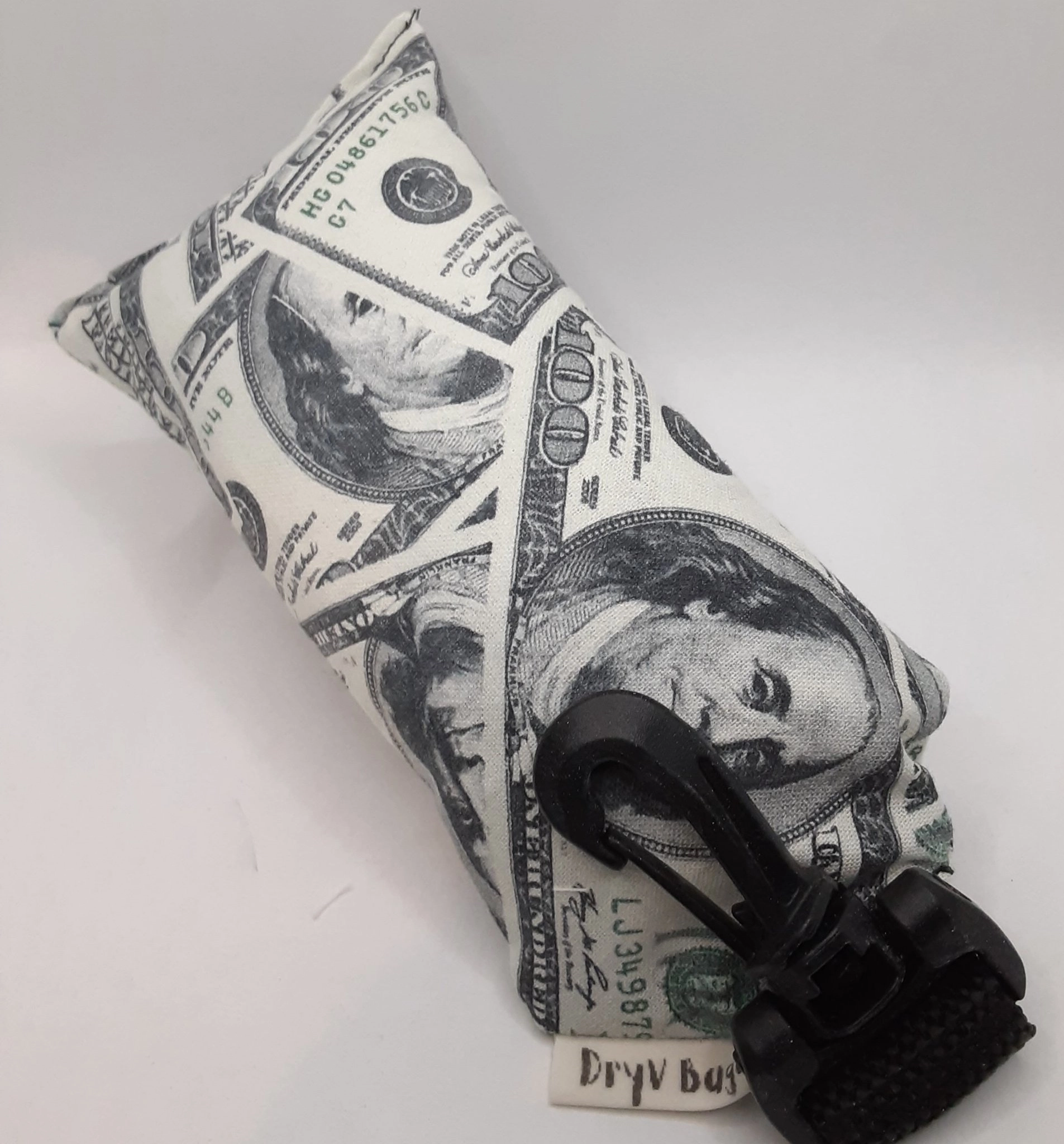 The Dryv Bagz Putter Bag is one of the most unique hand drying bags from their lineup. The Putter Bag has a heavy duty swivel clip attached to one end of the bag. This allows you to clip the bag onto your Disc Golf Bag or Cart and have easy access to your Dryv Bag at any moment.