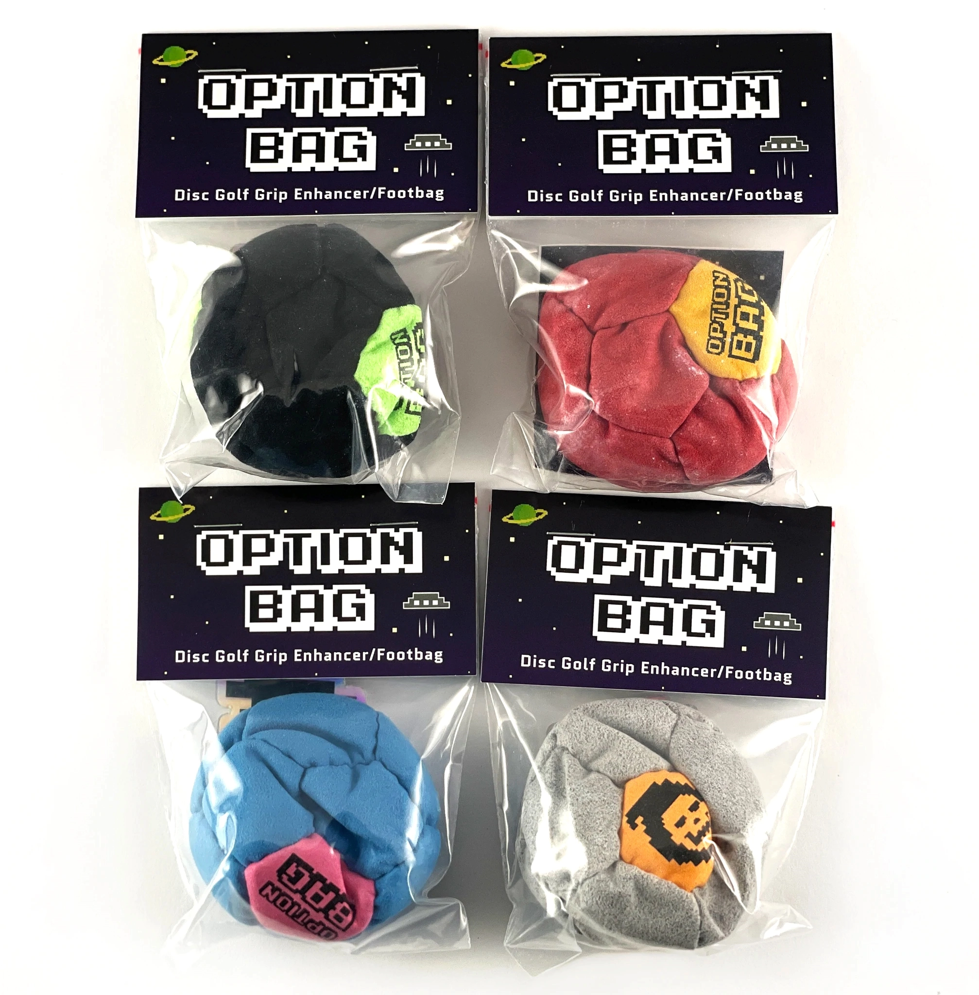 The Option Bag is a grip enhancement tool that is filled with a blend of chalk and ceramsite with a subtle minty scent. It is also designed as a footbag, or a Hacky Sack.