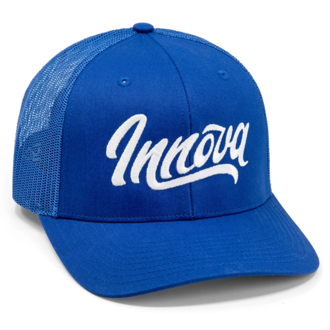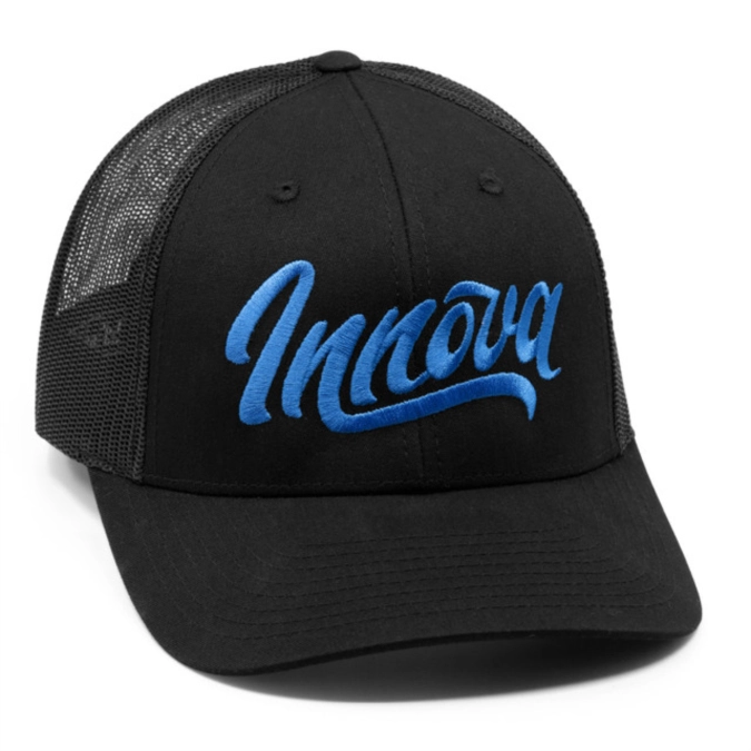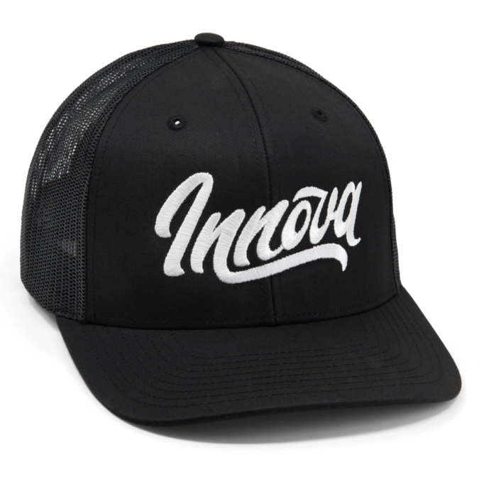This Innova Flow Trucker Hat has the comfortable and durabile style of a trucker hat with the stylish Innova "Flow" writing. The acbk panels are a breathable mesh with a curved brim and snap back sizing. Perfect for a day on the course or to wear around town.