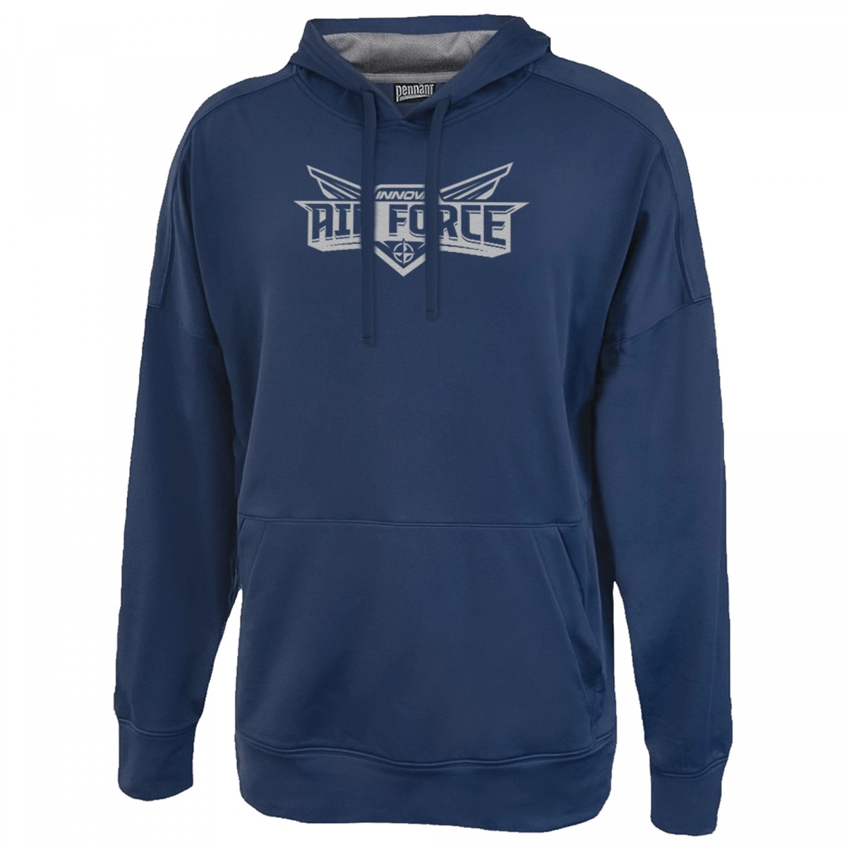 Proudly represent the sport and stay warm with this Innova Air Force hoodie. This hoodie has the Air Force logo in the front and an Innova logo on the back.