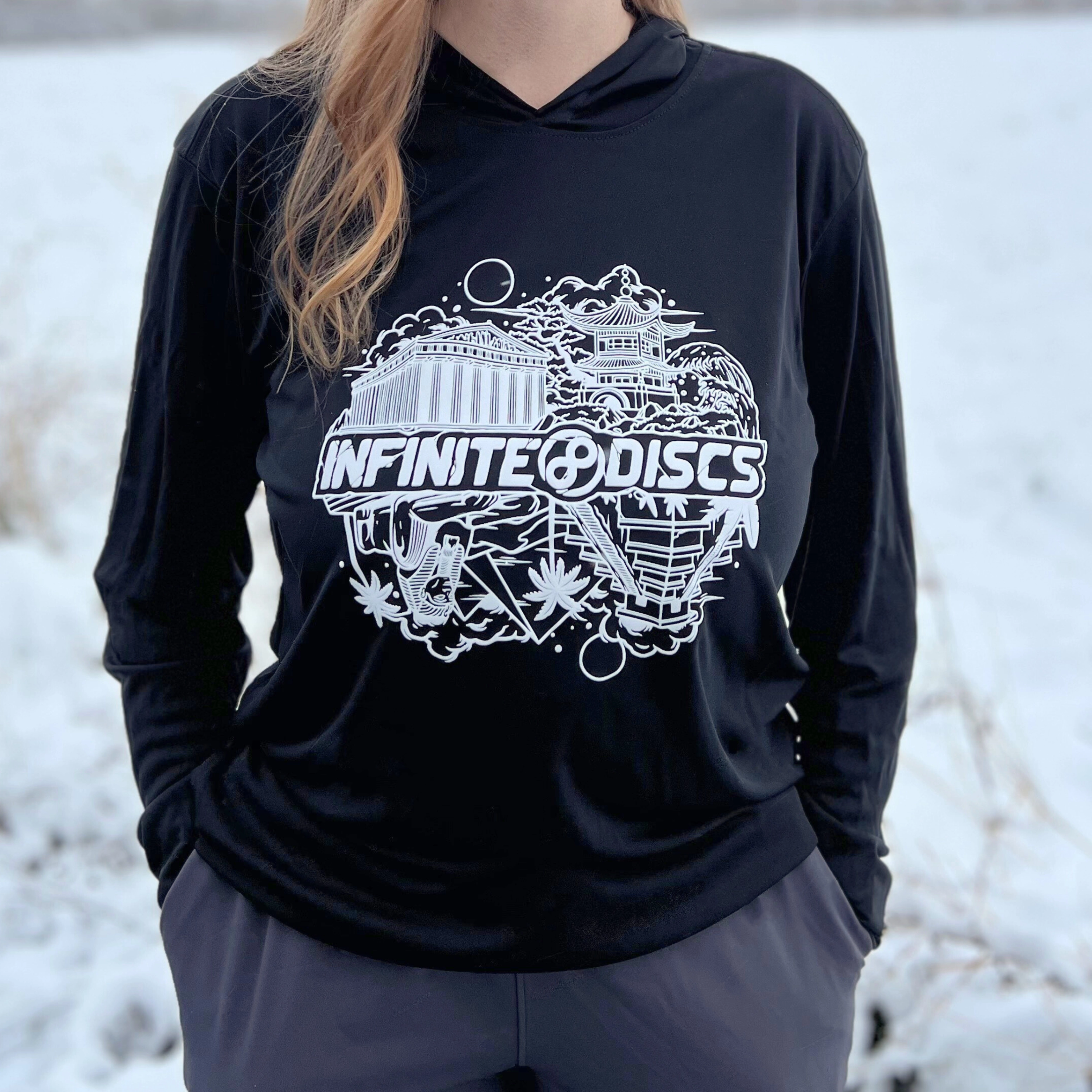 Step up your disc golf game with the 'Infinite Culture' Performance Long Sleeve Hoodie!