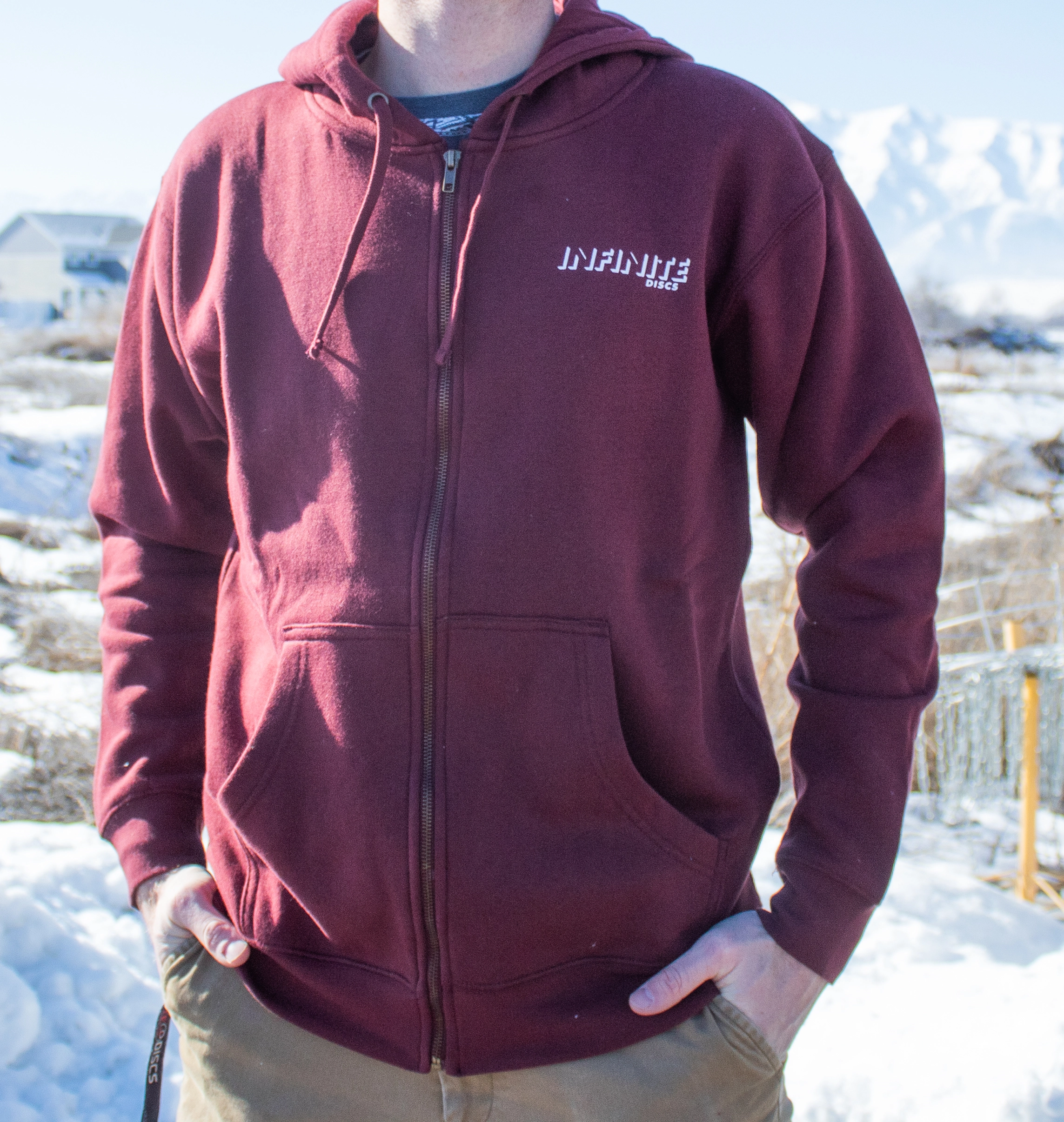 The Infinite Discs Zipper Hoodie with 3D logo is back with a fresh new look and higher quality material, making is a staple for cold weather. When you select your zip up, you will have 2 selections to choose from for the logo on the back (There is also a blank option).
