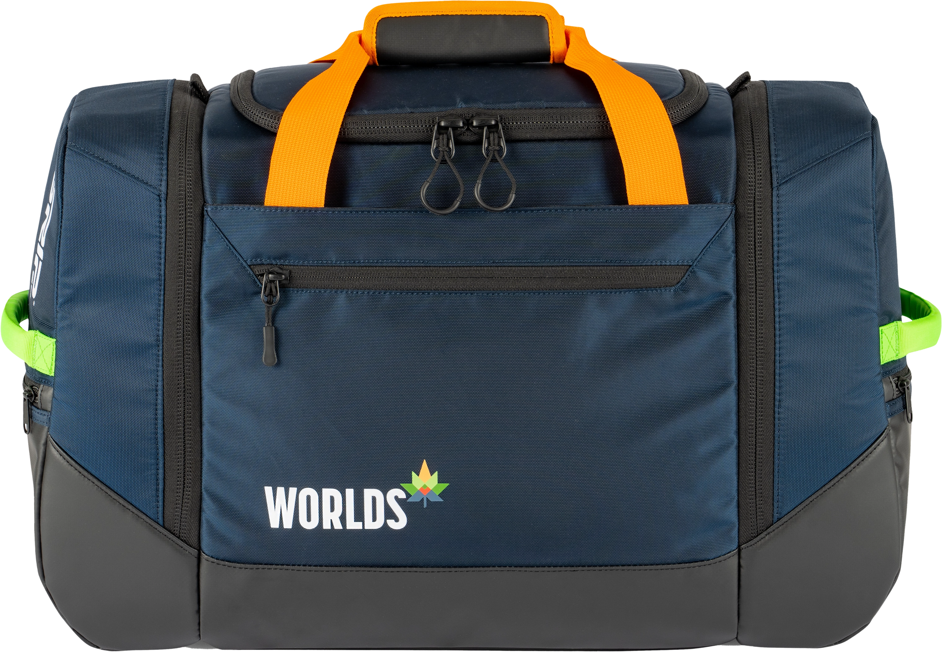 The GRIPeq travel sport duffel bag (2024 World Championship edition) is designed to tour the world with features and storage specific to the touring disc golfer.