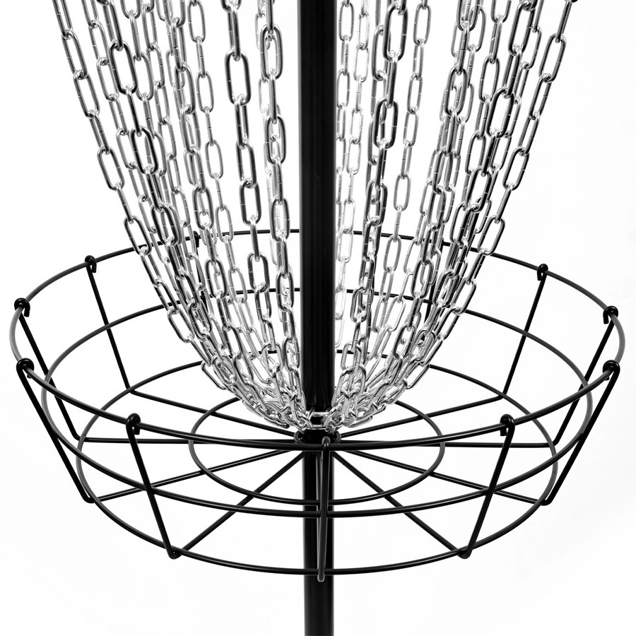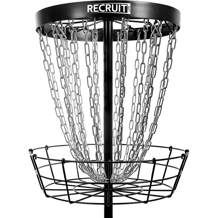 The Dynamic Discs Recruit Lite is the perfect blend of price and quality. It offers several features from higher-end baskets, but takes up a smaller footprint. It has 24 zinc coated chains to catch putts with ease. The center pole is heavy duty, ensuring the basket can catch those faster putts. The Recruit Lite weighs only 35 pounds, and can be easy assembled and disassembled for transportation.