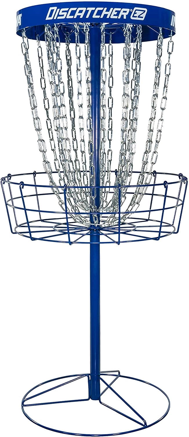 This portable basket is designed to simulate the catching abilities of a permanent heavy duty course basket with 24 chains. The Innova Discatcher EZ basket features all steel construction, quick and easy set up, is PDGA approved, and while not designed to be a permanent course basket, is built to last!