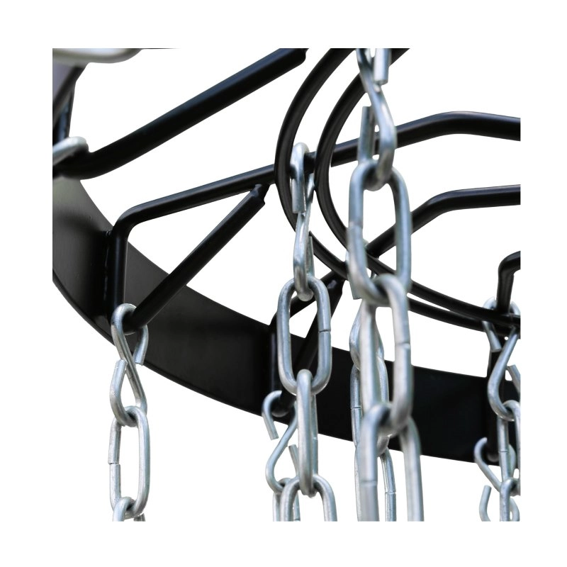 It has 24 chains consisting of 12 inner and 12 outer chains made of heavy zinc. Each set is secured by O-Rings above the basket. The S-Hooks are strongly confined between the O-Rings to reduce inner blowback. The cage is 7mm and is strong enough to hold its shape for years to come.