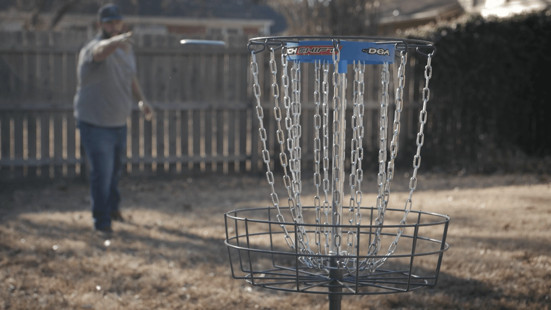Pro Shift Position: In this extra challenging position, the entire chain assembly is lowered using a telescoping pole. Now the target is narrow and shorter than the average basket. This is sure to improve your pinpoint accuracy.