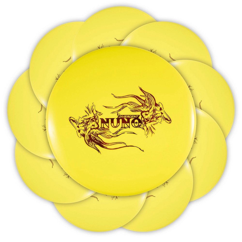 The NUNO putter from Divergent Discs is an excellent, professional level putter with a semi deep rim and no bead. It works great for putting at the basket, or for throwing straight, controlled approach shots. It comes in premium, Max Grip plastic which combines durability with a tacky feel that provides excellent grip in all conditions.