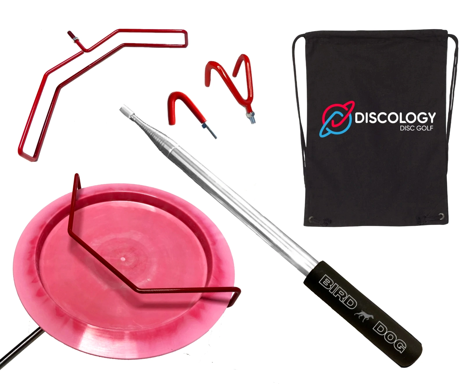 Made of a surgical stainless steel with an easily interchangeable heads. The head screws on & off to fit perfectly in your disc golf bag. This pole extends up to 15 feet.