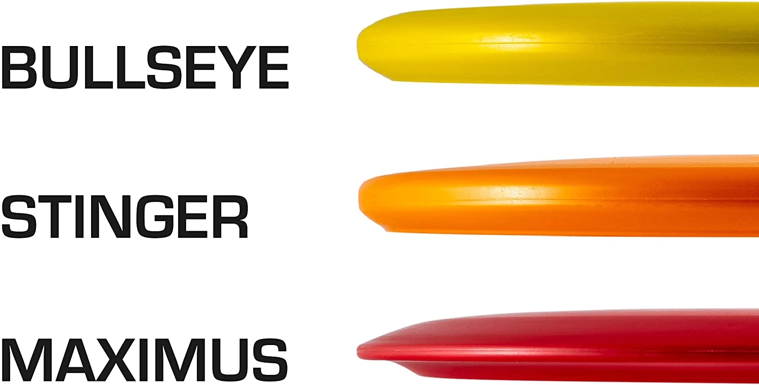 The Hero Disc Golf Starter Set is a great pack of discs for beginners. Each disc has a good flight and they work well together. The Maximus Driver has a nice amount of turn and glide, and combined with the light weight of the disc it's easy to get distance. The Stinger Midrange flew dead straight for me, with just a small touch of fade at the end. The Bullseye Putter feels good in my hand and comes out really cleanly. I've got bigger hands, and was slightly concerned about the shallower rim, but it didn't turn out to be a problem at all. I would definitely recommend this as a fantastic starter set for many players.