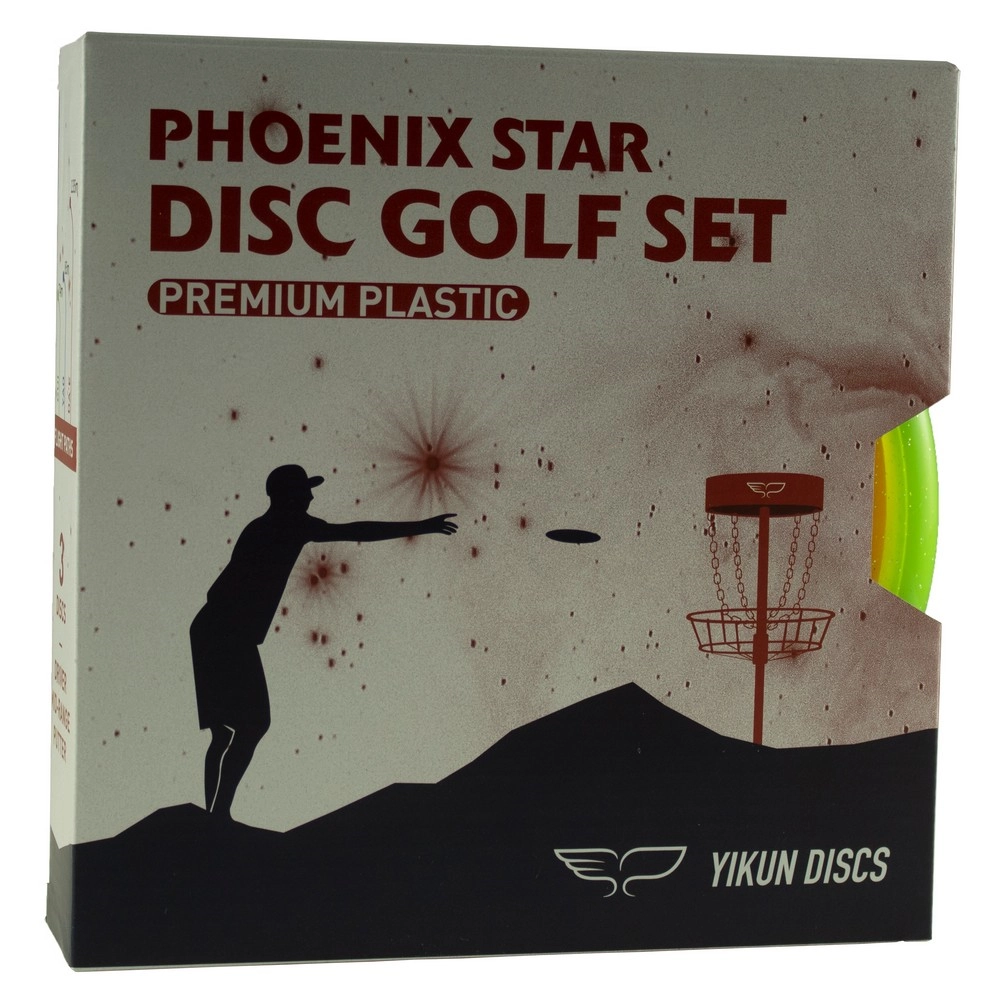 This is a premium 3-disc set from Yikun Discs that has the GUI putter, the YAO midrange, and the DA'E driver, all in Phoenix Star plastic. Phoenix Star is their durable, translucent plastic with sparkling metal flakes. These are also moderately overstable discs for players that have more experience, so it is not as much of a "starter set" as it is a "3-disc pack" for players who want to try out some quality discs from one of the fastest growing brands in the sport.