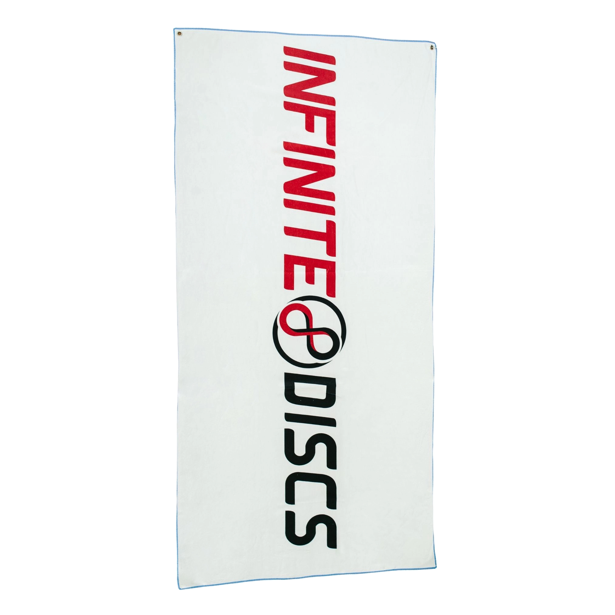 This full-sized beach towel has several functions, making it a diverse accessory for your disc golf practice and competition. It can be used as a beach towel, but aslo has clips which allow you to attach it to tree branchs, fences, in doorways, or anywhere where it hangs to reveal a full-size basket for target practice. You can then practice putt at the towel without needing to carry around an actual practice basket. This allows you to warm up your putting game almost anywhere. It can also be used after your tournament in the hot sun-- before climbing back into your car, use the clips to attach the towel around your seat's head rest to protect your car's upholstry from your sweaty back. Also, flip this towel around and you'll have an Infinite Discs banner to hang at your club, league, event, dorm room, or whenever you want to show your love of all things disc golf.