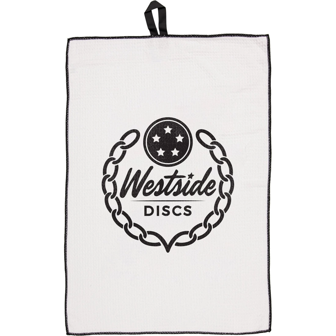 The Trilogy Waffle Weave Towel is a premium disc golf accessory made from absorbent microfiber with a waffle weave pattern. Featuring a convenient twill strap for easy hanging, this towel is 16" x 24" in size, making it a practical and essential choice for keeping your discs clean and dry on the course.
