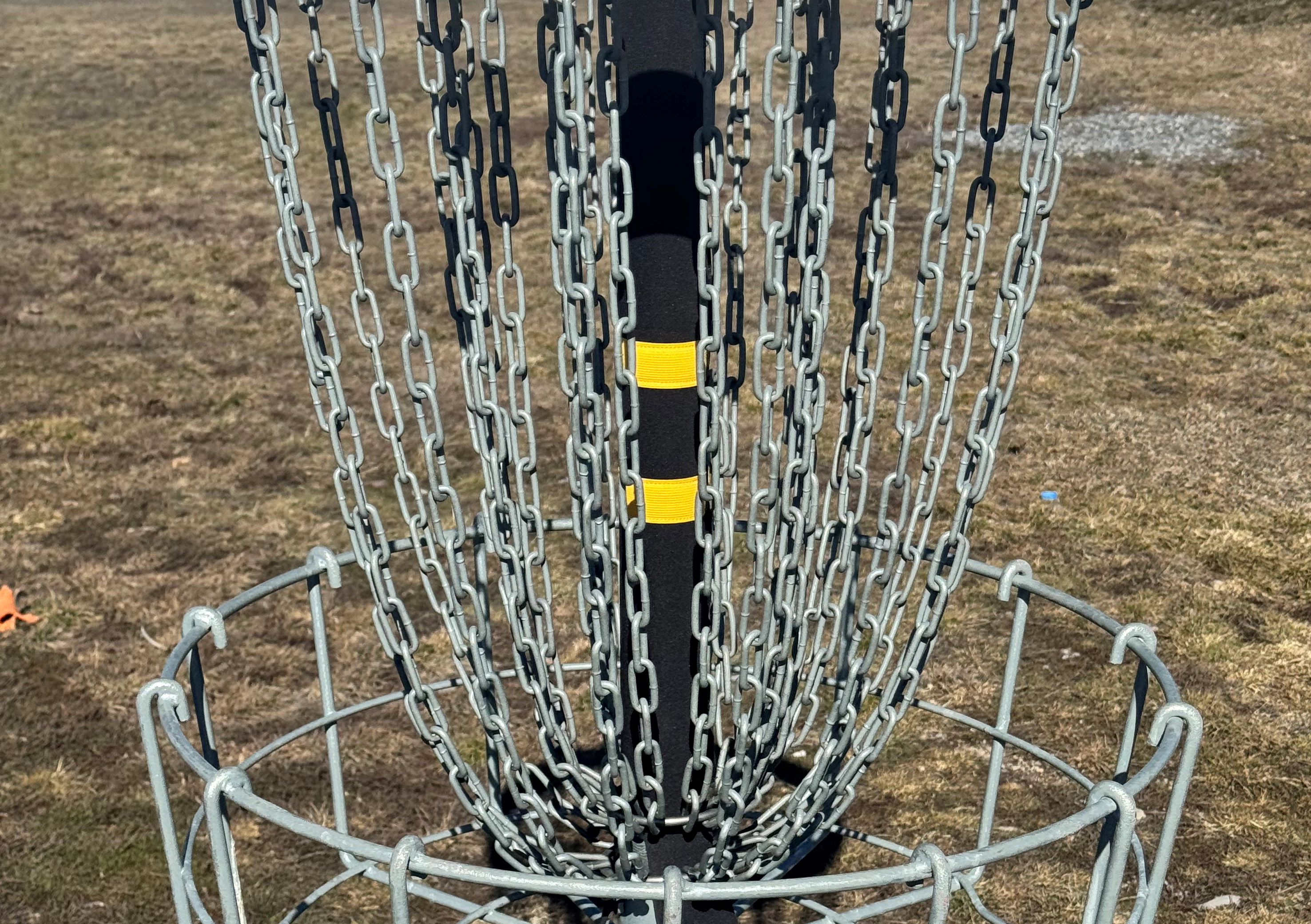 Although the sound of a disc hitting chains is one of the beautiful aspects of disc golf, there may be times when you need to quiet the noise. The Chain Suppressor wraps around the center pole to greatly quiet the metal-on-metal sound. The neoprene helps keep the noise down for indoor or backyard practice. The Suppressor is reversible so you can choose all black or yellow target stripes.