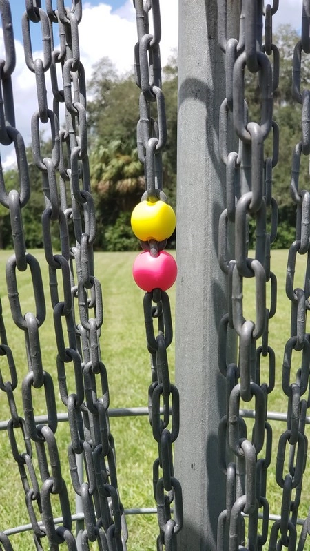 The DiscDot is designed to fit on the chains of your practice basket. They are to help make a target link more easily seen. Each order will have ONE DISC DOT of the color you choose.