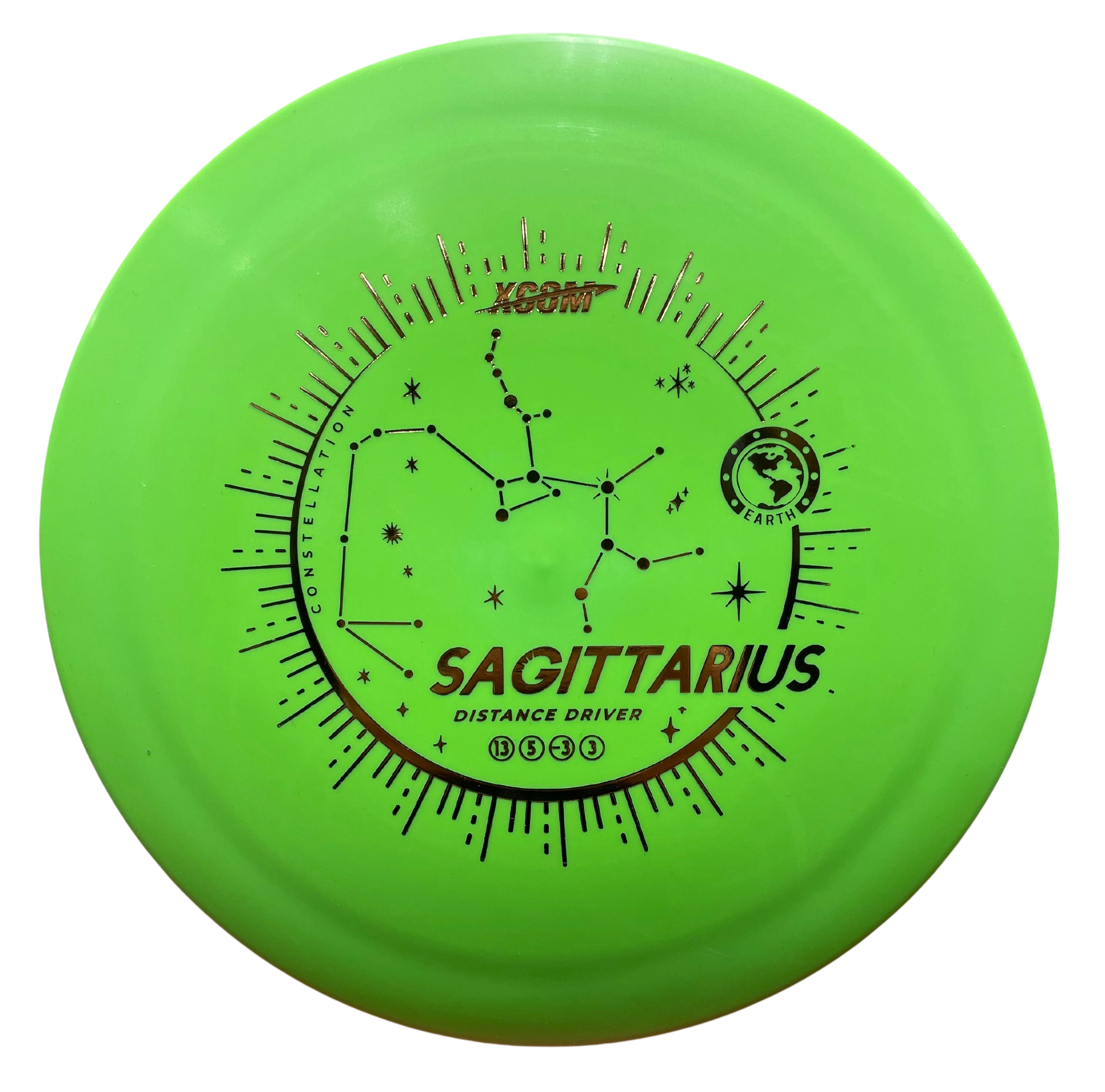 The Sagittarius is a maximum speed distance driver with a very wide rim. It is designed to be thrown with as much speed as possible with a stable flight that can have a lot of side-to-side movement during its flight for maximum "flex" lines. It may be difficult for newer players to control such a high-speed driver, but for players with some experience can be a lot of fun to throw while pushing for impressive distance results.